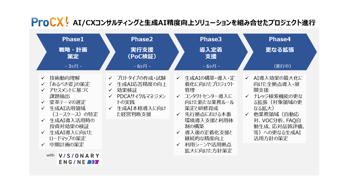 そこで従来からのビジネスパートナーであり、生成AIを活用した「次世代型コンタクトセンター構想」を掲げ、実践している当社は、2024年5月より、その戦略策定と実行支援を伴走しました。