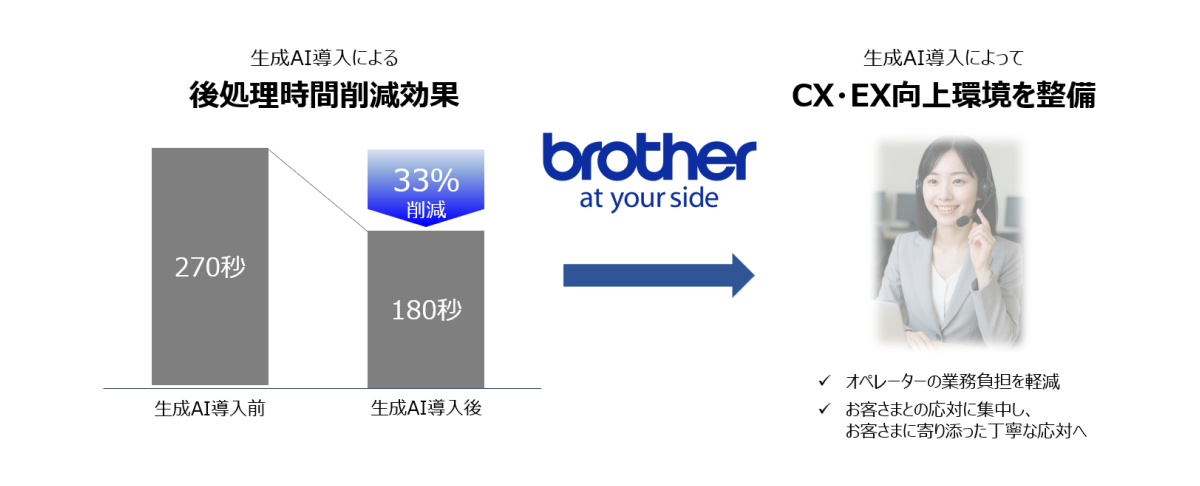 株式会社NTTマーケティングアクトProCX(本社:大阪市都島区、代表取締役社長:長徳 慎二郎、以下、当社)と株式会社ビジョナリーエンジン(本社:東京都港区、代表取締役:小栗 伸、以下、ビジョナリーエンジン)は、ブラザー販売株式会社(本社:名古屋市瑞穂区、代表取締役社長:安井 宏一、以下、ブラザー販売)の中期コンタクトセンター戦略の策定および実行支援パートナーとして、ブラザー販売の中期コンタクトセンター戦略と当社が掲げる「次世代型コンタクトセンター構想*1」を掛け合わせたプロジェクト(以下、本プロジェクト)を2024年5月より始動し、生成AI導入によるコンタクトセンター業務の改革に取り組んでまいりました。このたび、本プロジェクトにおいて一定の進捗と成果が得られましたので、その内容をお知らせいたします。