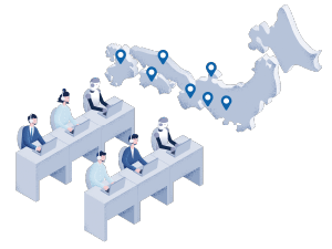 7,000席のキャパシティを活用し、お客さまのご要望に応じて各地で効率的にセンターを稼働させることで、大量コールが必要な業務等のご依頼にも柔軟に対応することが可能です。