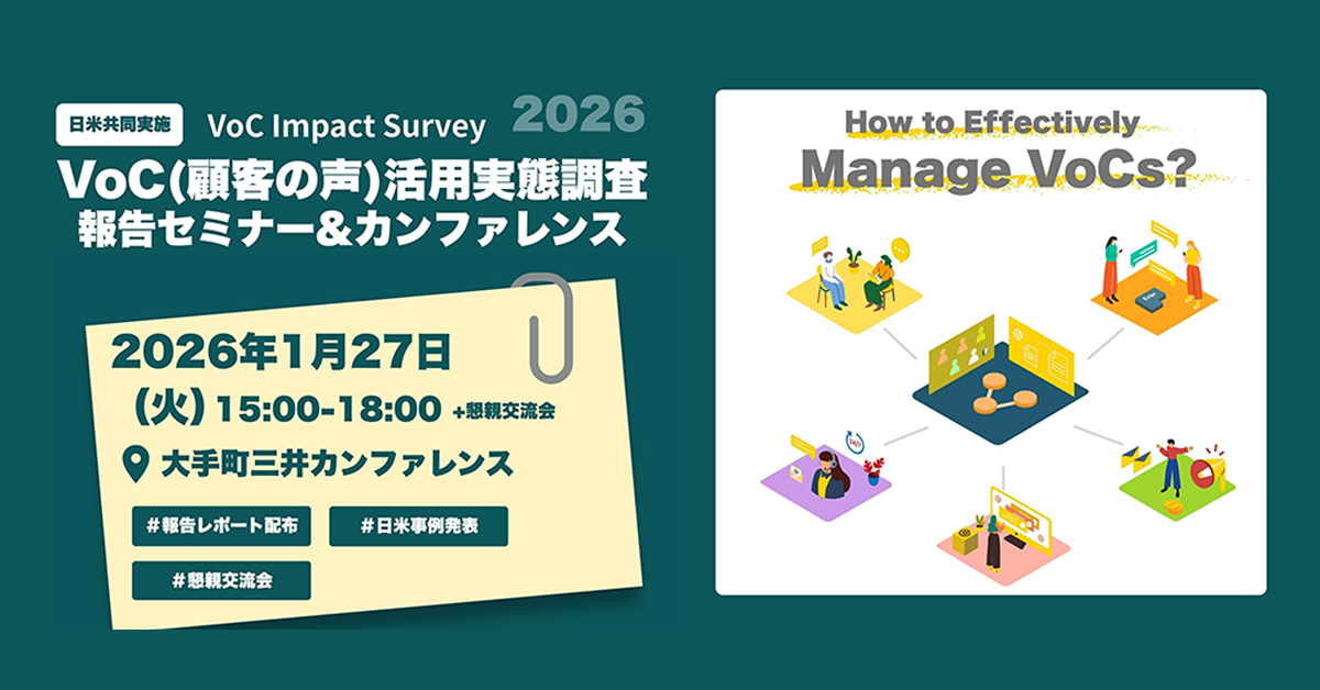 VoC(お客さまの声)は非常に重要なの経営テーマと認知されている一方で、そのマネジメント方法や具体的な活動についての活発な議論は決して多くないのが現状です。その要因は、VoCが指すデータの幅広さや仕組み・体制、企業文化や費用対効果などさまざまです。この度、これらの課題を解消し、VoC活動を一過性ではなくサステイナブルな組織学習と事業成長に繋げるべく、企業及び業界団体が賛同し、日米共同でVoC利活用の実態を明らかにする調査を実施しました。