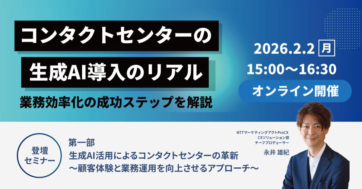 本セミナーでは、生成AI導入を成功に導くための事前設計から運用定着までの実践アプローチを整理したうえで、コンタクトセンターが検討すべき2つの打ち手を解説します。1つは、生成AIを用いたオペレーター評価によって個々人の弱点を可視化し、その結果をもとに生成AIトレーニングを実施することで応対品質を組織的に底上げする取り組みです。もう1つは、「お客様の声」を正しく受け取り・理解する電話応対AIエージェントの活用であり、顧客体験の質を高めつつ現場負荷を軽減する実運用のポイントをお伝えします。